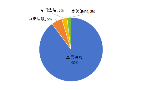 491例推荐部门为法院的多元解纷案例已全面覆盖31个省级行政区域,其中排名前五位的仍为重庆市、江苏省、山东省、河北省及安徽省,分别有85例、77例、39例、35例和28例。491例案例覆盖三级法院及专门人民法院,基层人民法院的案例数量最多,有441例,总占比约90%;中级人民法院、专门人民法院及高级人民法院案例数量较少,分别有27例、13例和10例。
