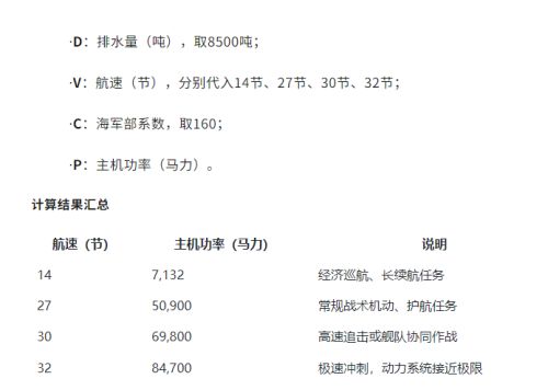 这点也是与其他中型国家海军要求完全不同的地方,要求更高,虽然仅仅是3节航速,但主机功率需要增加30%,而到32节航速需要增加60%,看着5节航速,却是海军层级的分水岭!